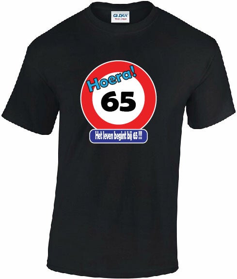 T-shirt Hoera 65 jaar, het leven begint bij 65.